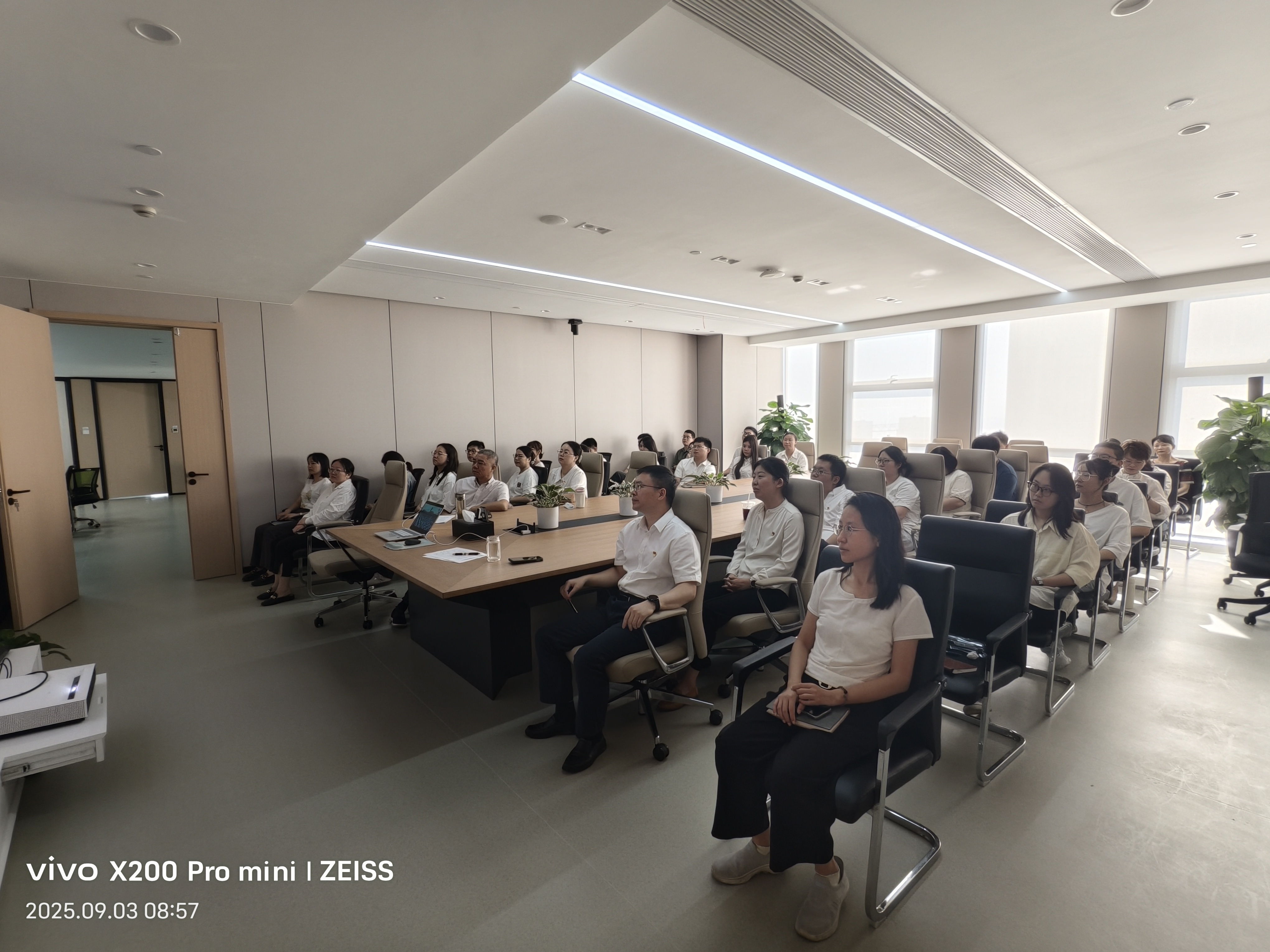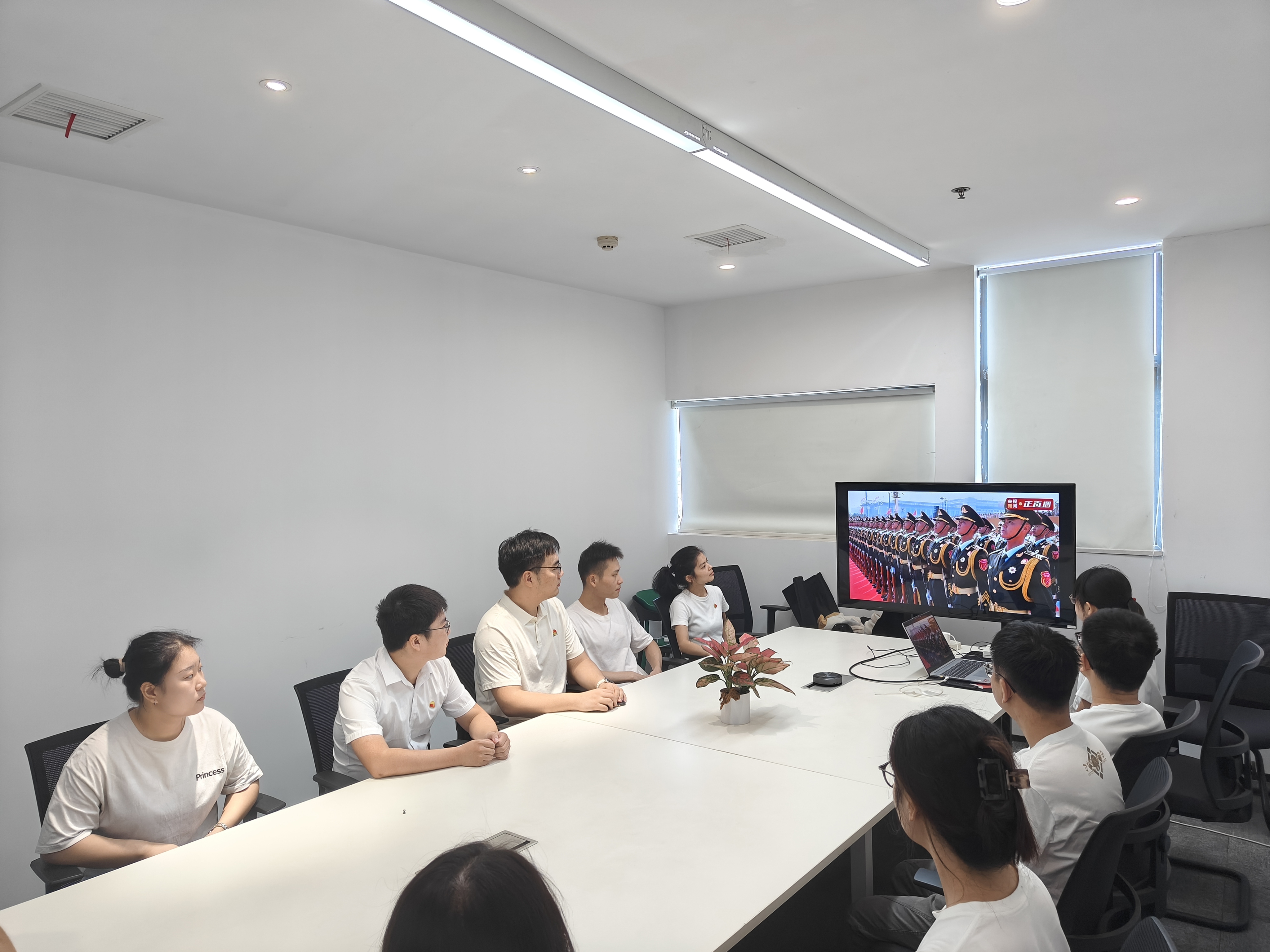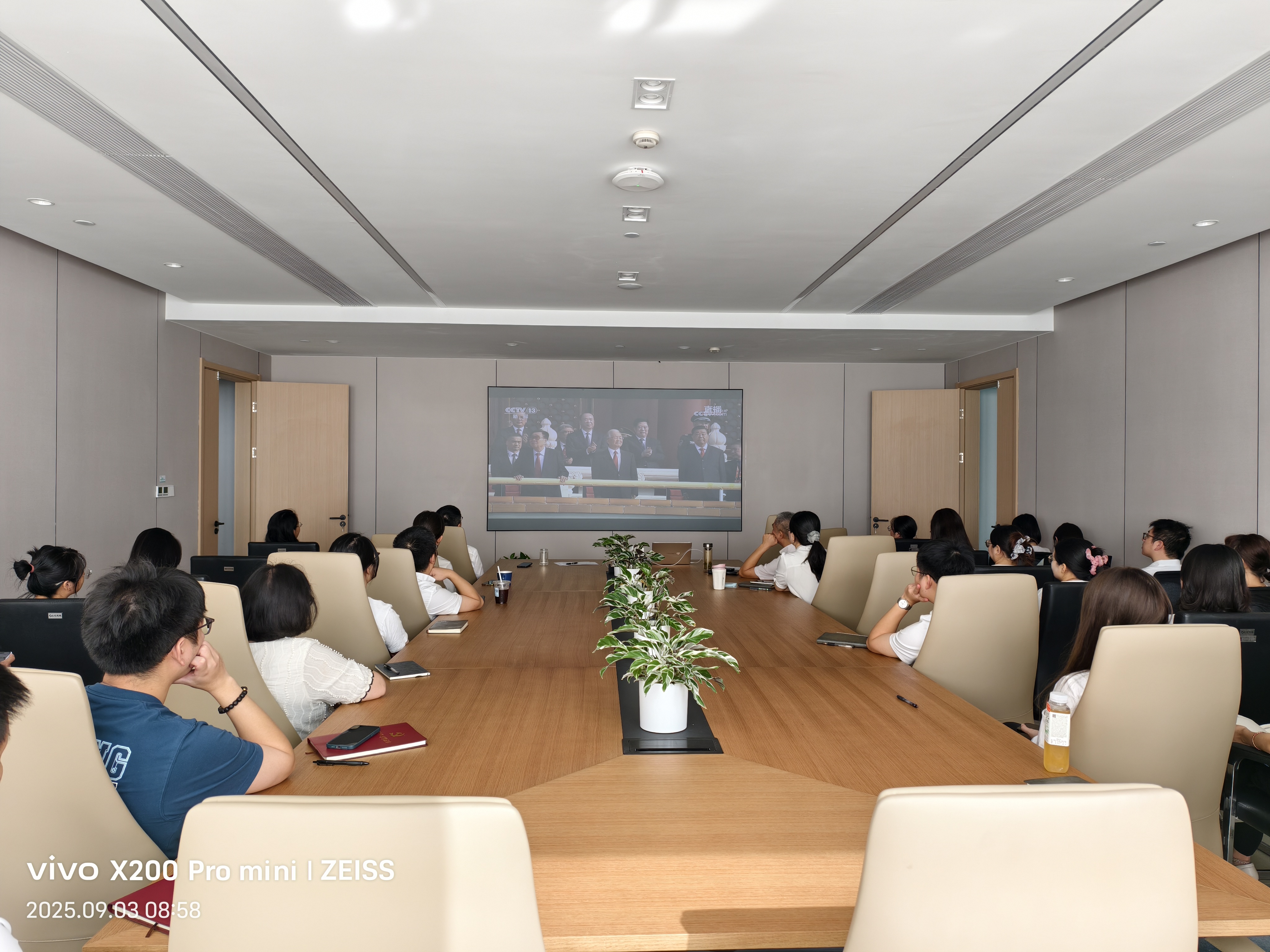 數(shù)旅集團(tuán)組織集團(tuán)業(yè)務(wù)事業(yè)部、研發(fā)管理中心、紫荊公司在36樓會(huì)議室觀看“紀(jì)念中國(guó)人民抗日戰(zhàn)爭(zhēng)暨世界反法西斯戰(zhàn)爭(zhēng)勝利80周年大會(huì)”專題節(jié)目